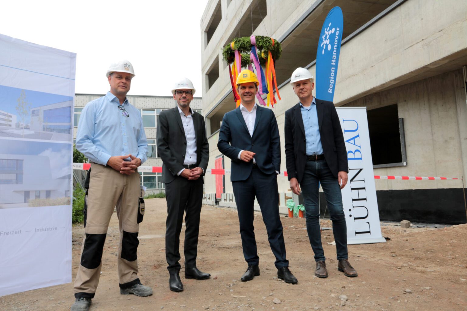 Hannover – Nagelneue Räume für die Arbeit mit Metall, Holz und Farbe: Dem Werkstattgebäude im Berufsschulzentrum der Region Hannover am Waterlooplatz wurde heute der Richtkranz aufgesetzt. Rund zwei Jahre nach der Grundsteinlegung sind die Rohbauarbeiten abgeschlossen. Mit dem traditionellen Richtspruch haben Bauleiter Michael Berberich, die Region Hannover als Schulträgerin und Bauherrin, die Berufsbildenden Schulen BBS 3 und BBS ME das Richtfest gefeiert. Die Kosten für den Neubau liegen bei insgesamt rund 27 Millionen Euro. Bis Ende 2023 soll die Baumaßnahme abgeschlossen sein.