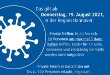Hannover - Der 7-Tages Inzidenzwert der Region Hannover liegt seit Tagen über 35. Die neuen Verfügungen des Landes Niedersachsen sind für den 25. August...